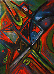 The book cover uses a painting by Virgil Finay, who gave the painting two titles, as identified on the back of the canvas in his own handwriting: "Homage to Hieronymous Bosch, OR NIGHT DRIVER". It is oil paint on canvas and dated 28 September 1965. It measures 16 x 20 inches.