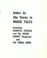 The booklet is arranged by title, then by author, as well as verse included in fiction, Virgil Finlay’s poetry series, Oriental Magic, a magazine index and The Thrill book.