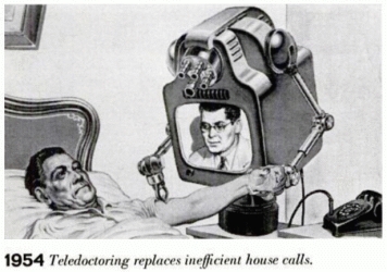 On page 63 one of the two illustrations for The Teledocter by Virgil Finlay is printed. That drawing was first published in Radio-Electronics, February 1955.