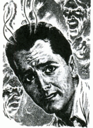 The cover depicts a partial and slightly distorted drawing by Virgil Finlay for 'Slan', orginally illustrating the story by A.E. van Vogt, published in Fantastic Story Magazine, Summer 1952.