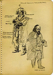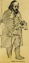 The sketch was originally page 11 of 'A Midsummer Night's Dream by Wm. Shakespeare: Studies for the Illustrations by Virgil Finlay'. Beneath the figure of Charles Macklin the text reads 'Macklin as Shylock'.