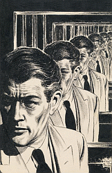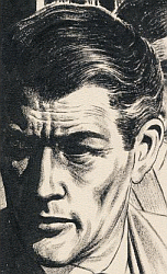For the Virgil Finlay drawing for the story "Midnight in the Mirror World" by Fritz Leiber, Fantastic Science Fiction, October 1964, page 113, most likely a publicity photo from Gregory Peck was used.
