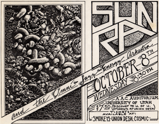 The poster was made as promotion by Curt Setzer (?) for Sun Ra’s only concert in Utah on Wednesday, October 8, 1986.