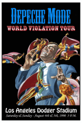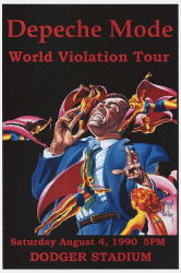 The poster was made to promote two concerts of Depeche Mode in Los Angeles Dodger Stadium as part of the 'World Violation Tour', on Saturday & Sunday - August 4th & 5th 1990, 5 P.M..