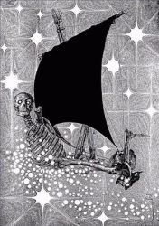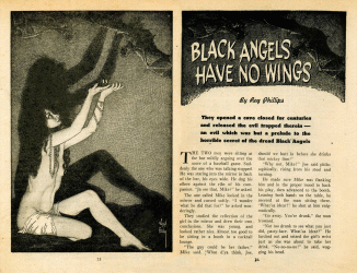 The Virgil Finlay illustration for 'Black Angels Have No Wings' appeared in Amazing, August 1952.