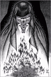 The Virgil Finlay illustration for 'The Smoking Land' appeared in A. Merritt's Fantasy Magazine, 1950.