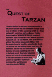 In 1941, 'The Quest of Tarzan' first appeared - in three parts - in the August 23, August 30, and September 6 issues of ARGOSY WEEKLY, with the first installment cover and one interior per issue by Virgil Finlay.