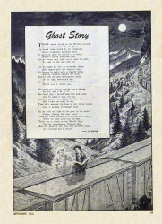 The full page Virgil Finlay drawing illustrates the poem 'Ghost Story' by J.E. Aldrich.