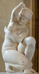 'Crouching Aphrodite' is a 71 cm high marble statue. It is a variation made during the Hellenistic period (3rd–1st century BC) on the theme of the crouching Aphrodite. It is on display at the Louvre in Paris, France.