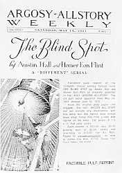 - Page 87: The Blind Spot (bell), as part of advertisement for a facsimile reprint of 'The Blind Spot' from Argosy 1921, with three illustrations by Virgil Finlay from the later reprint.
