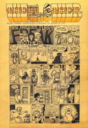 The East Village Other was an underground newspaper with a peak circulation of 60.000 copies. Features include the full page Fabulous Furry Freak Brothers strip on the front cover, a full page Jay Kinney comic strip Subway Revolt!, a full page wordless comic strip signed Doitch, "How To Get Inside The Teeneybopper's Head" text feature with illustration by Robert Crumb, a Ron Cobb political cartoon, an article "Ecological Shock Therapy" with an illustration by Virgil Finlay, political articles, reviews, and other items.