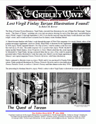 This supplement of the The Burroughs Bulletin for The Burroughs Bibliophiles tells the story of the rediscovery of the original Virgil Finlay drawing. Hake’s Americana auction house offered his double-page illustration for part I of “The Quest of Tarzan”. It was sold for $1,405.55 on June 5, 2008. The original is now a part of The Howard Otis Barrett Memorial Collection of Edgar Rice Burroughs Illustrators.