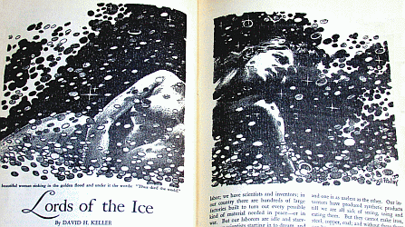 Pages 36 and 37 contain the two-page spread "Lords of the Ice" by Virgil Finlay.