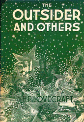 | "... Jacket design for THE OUTSIDER AND OTHERS is by Virgil Finlay of Rochester, New York, another friend of Lovecraft's, an artist whose vivid and imaginative illustrations have long enhanced the pages of Weird Tales and periodicals." |